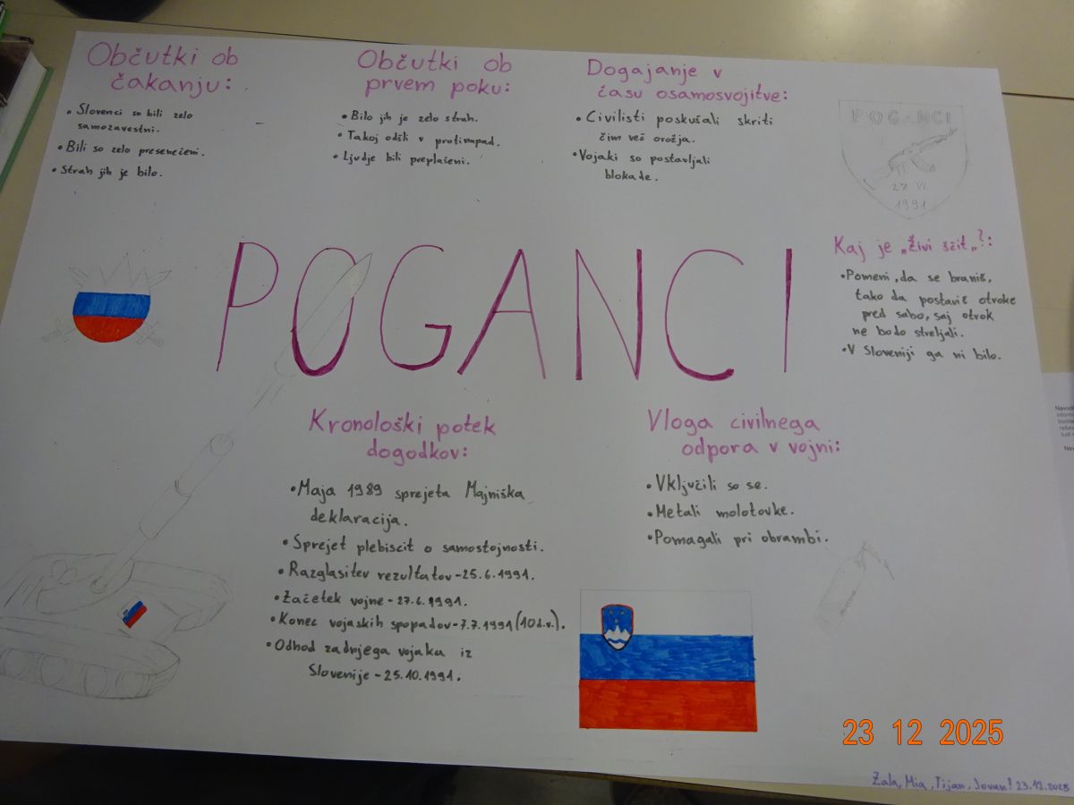 V petih šolskih urah so pripravili predstavitve o življenju v socialistični Jugoslaviji, njene politične in ekonomske krize v osemdesetih letih ter potek razglasitve samostojnosti in osamosvojitve Slovenije. Omenjene teme so nadgradili s spoznavanjem podrobnosti glede spopadov v Pogancih in na Medvedjeku.