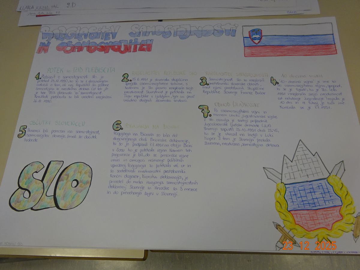 Osnovni vsebinski namen je bil spoznavanje procesa osamosvajanja Slovenije ter prezentacija naučenega preko napisanega in narisanega poročila. Pri izvedbi aktivnosti so sodelovali tudi štirje veterani iz Območnega združenja veteranov vojne za Slovenijo in Območnega združenja slovenskih častnikov Novo mesto.