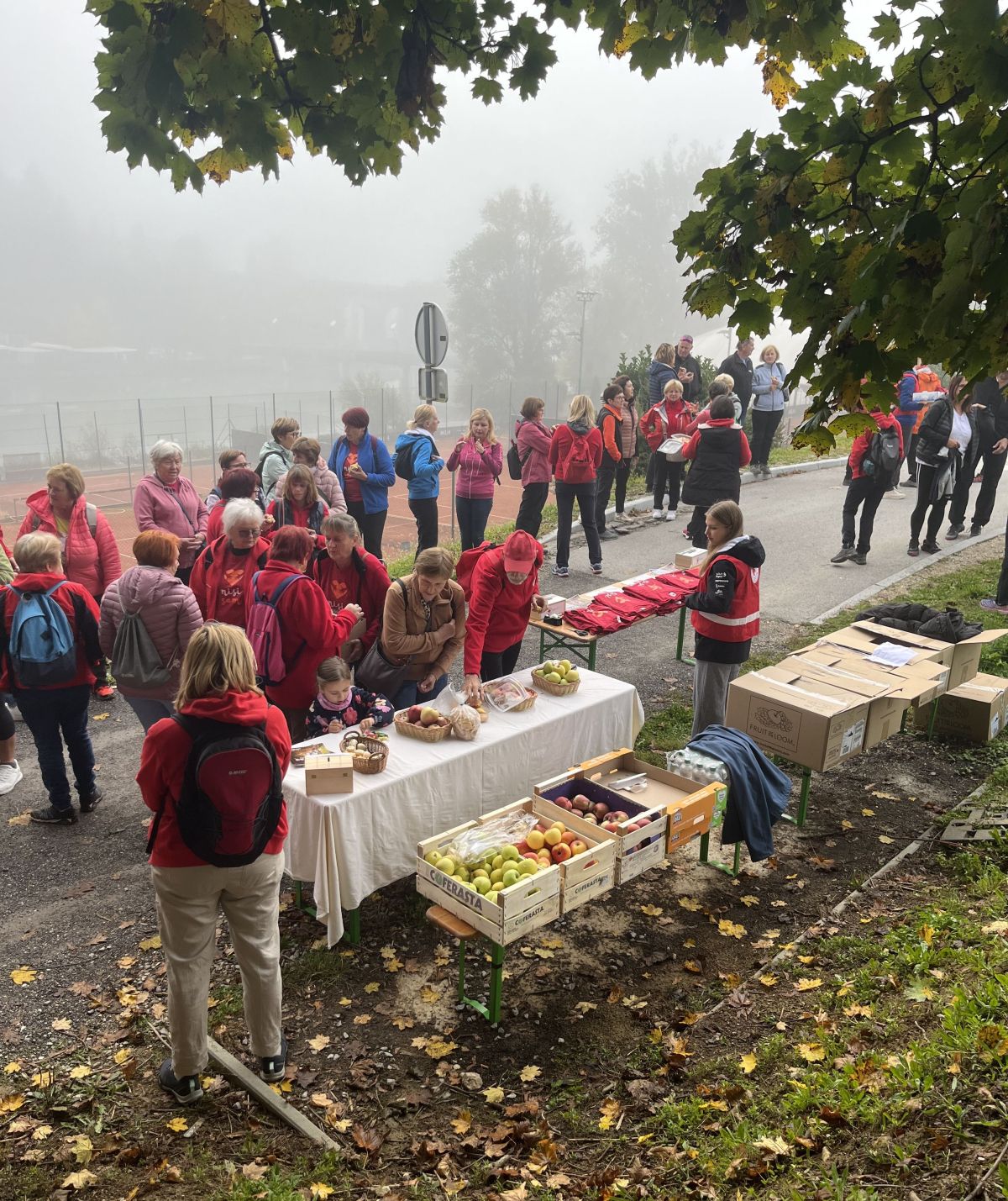 Na megleno sobotno jutro so se pohodniki začeli zbirati pri Športnem parku Portoval, kjer so jih pričakali mladi prostovoljci Manca, Rebeka, Lukas in Maj. Na startu so udeležencem ponudili domače pekovske dobrote, ki so jih pripravile krajevne organizacije Rdečega križa, ter jabolka, ki so jih prijazno donirale Kmetija Pleško, Kmetija Karlovček in Krnc d.o.o..