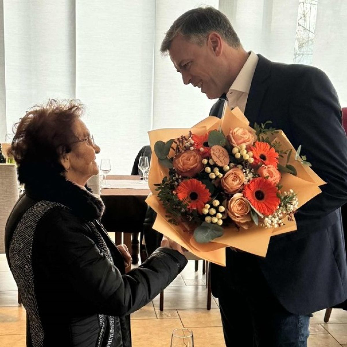 Ob tej posebni priložnosti je slavljenko obiskal tudi župan Gregor Macedoni, ki ji je osebno čestital za visok jubilej ter ji v imenu občine izročil šopek in darilo. Slavljenki so ob jubileju voščili tudi predstavniki Krajevne skupnosti Ločna–Mačkovec ter predstavniki Rdečega križa.