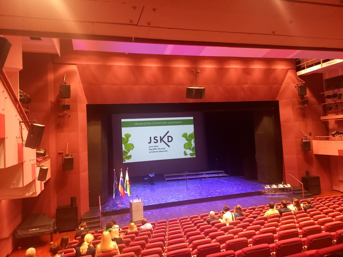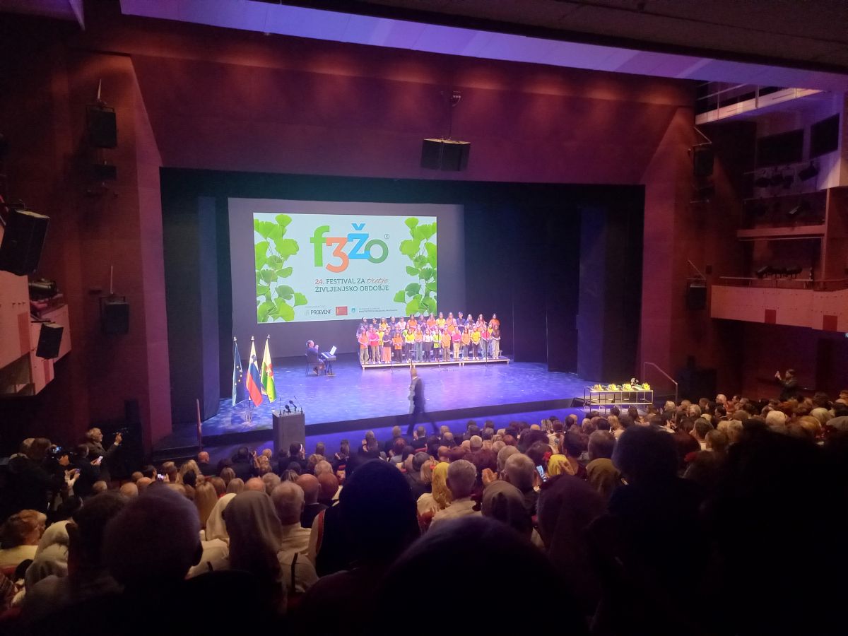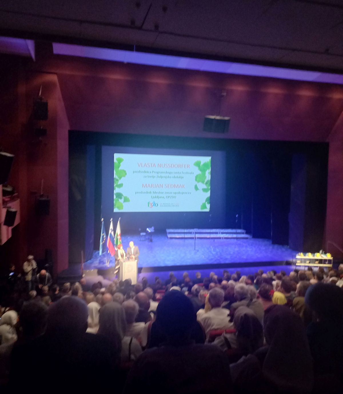 Dopoldne smo v Linhartovi dvorani prisostvovali enourni otvoritveni slovesnosti 24. F3ŽO. Nagovorili so nas: Vlasta Nussdorfer, predsednica Programskega sveta festivala, Marjan Sedmak, MZU Ljubljana, soorganizator festivala, Simon Maljevac, minister za solidarno prihodnost ter častni pokrovitelj 24. F3ŽO, predsednik Vlade Republike Slovenije, dr. Robert Golob.