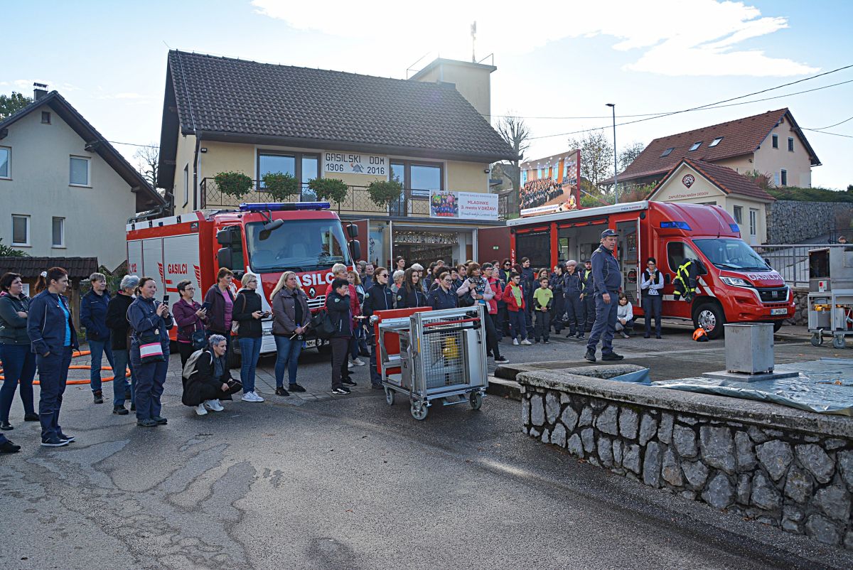 Članice smo si ogledale preventivno gasilsko vozilo GZS. Inštruktorji so nam pokazali, kako izgleda požar v stanovanju - goreče olje na štedilniku. Obnovile smo znanje, kako ravnati v primeru, če gori človek, in katere gasilne aparate poznamo.