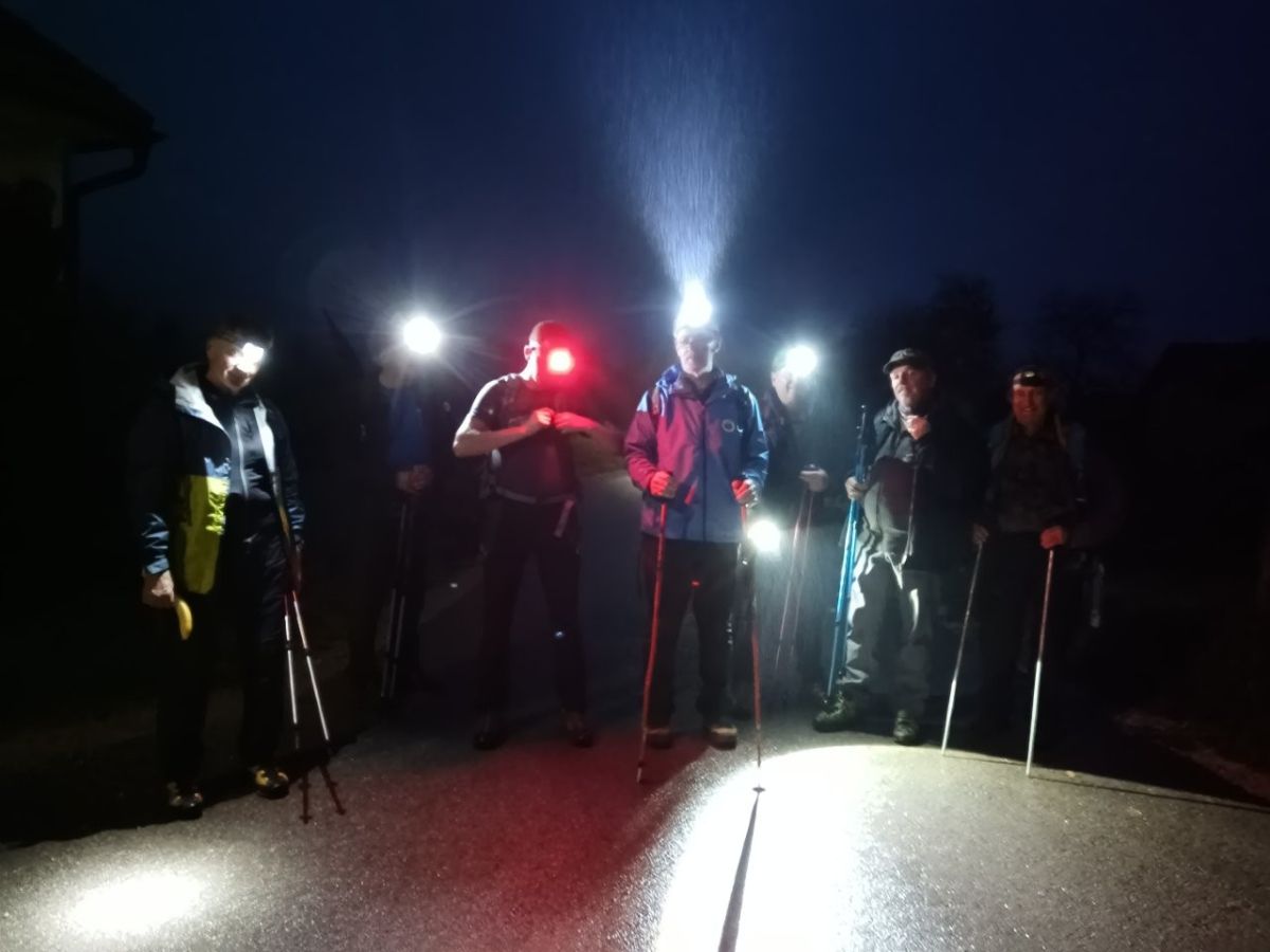 Letos je bilo vreme mokro in hladno, a se nas je na Grajskem trgu v Žužemberku vseeno zbralo osem izkušenih pohodnikov. Z nami je bila tudi Even, Stanetova štirinožna ljubljenka in naša dobra znanka z drugih pohodov. Odšli smo ob 15h skozi Klek, mimo Trebče vasi, skozi Tale do Boršta in po spodnji poti do Velikega Lipovca. Med potjo smo bili deležni okrepčil domače kapljice iz prijaznih sodov domačinov ob poti.