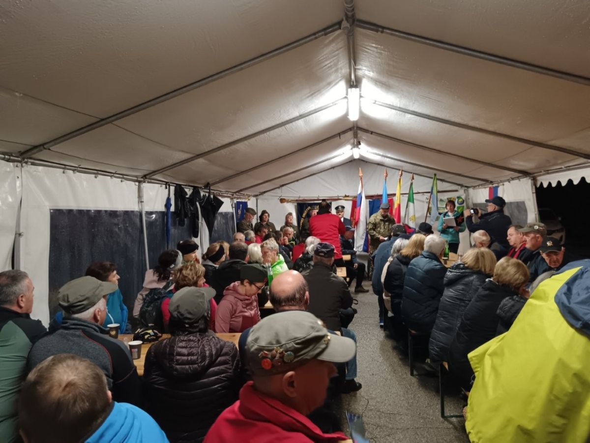 Slabo vreme je odvrnilo številne pohodnike. Bilo nas je le za poln šotor. Tu se je prejšna leta dogajal velik boj za prostor, kjer bi mogli v miru pojesti klobaso in spiti pijačo. Letos je bilo prostora dovolj.