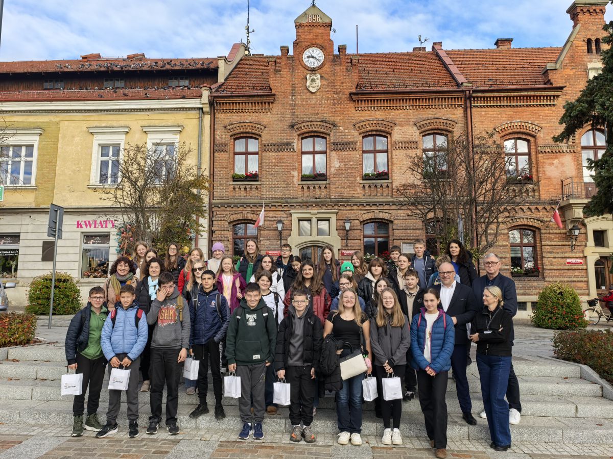 Po 1. uri pouka smo obiskali občino v Myślenicah, kjer nas je sprejel gospod podžupan Robert Bylica. Veliko nam je povedal o zgodovini in življenju v kraju. Vsak od nas je prejel tudi darilo v spomin na obisk kraja.