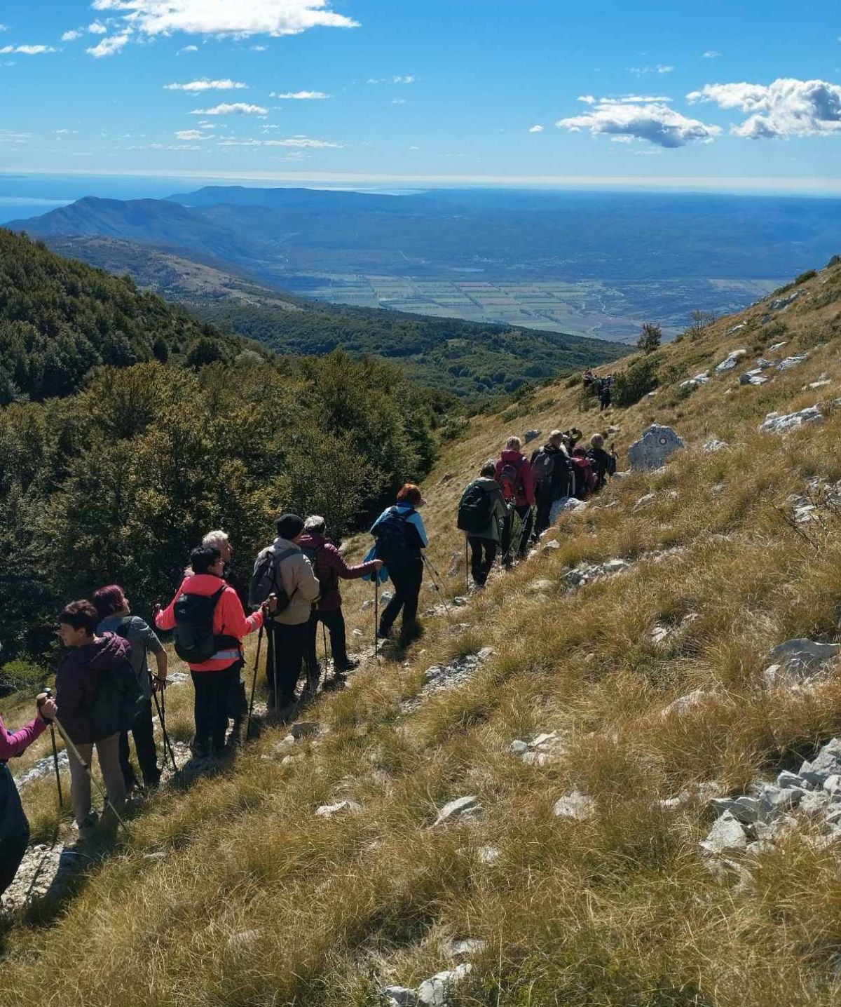 Sonce, prvi pogled na morje, izza kamnitega križa na Poklonu, kjer so se romarji klanjali Mariji na Trsatu, prijazni sprejem s kavico v Planinskem domu PD Opatija .., je bilo naznanilo za čudovit dan v gibanju, druženju.