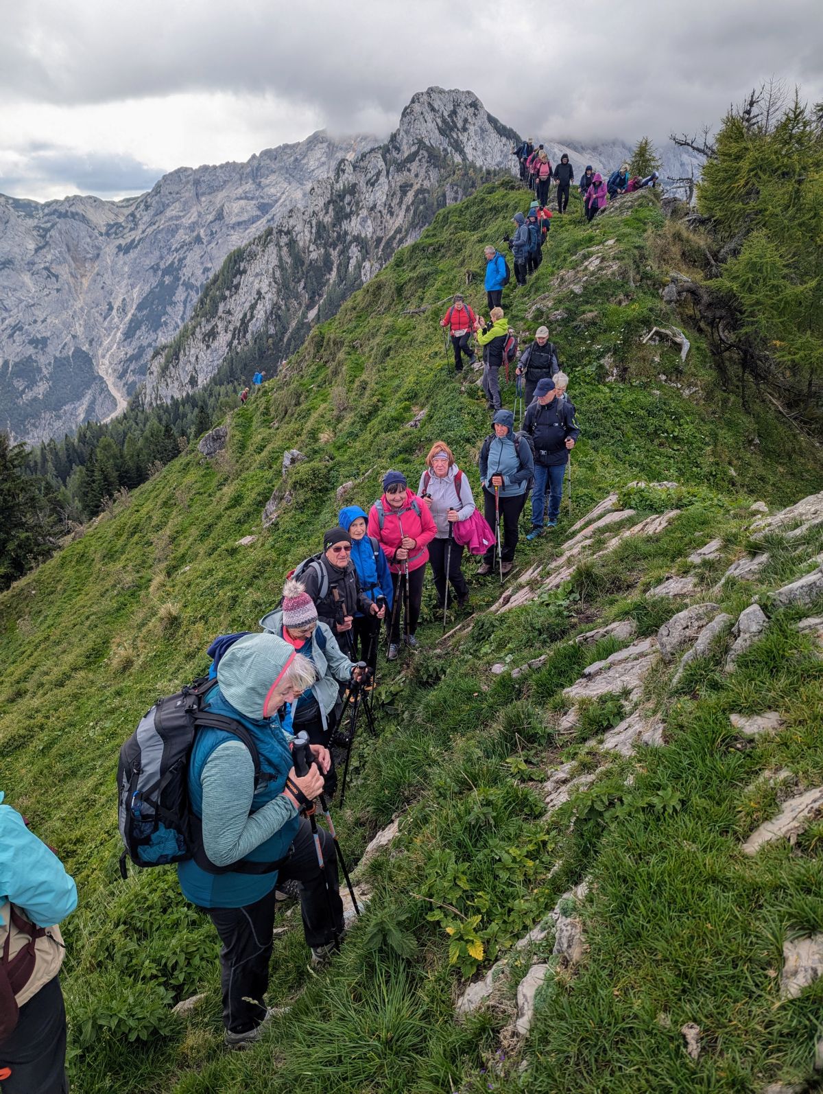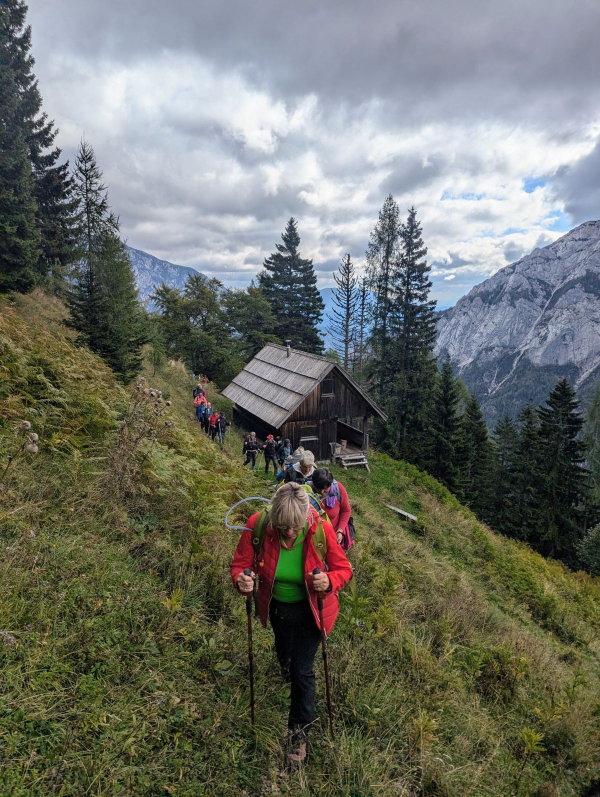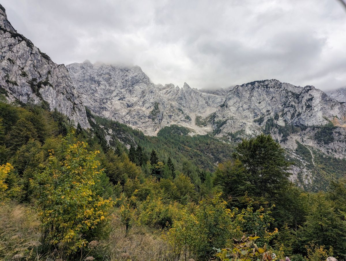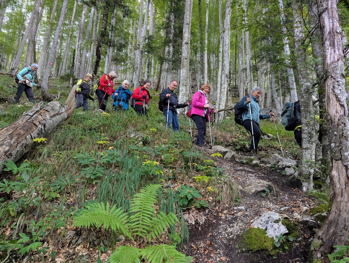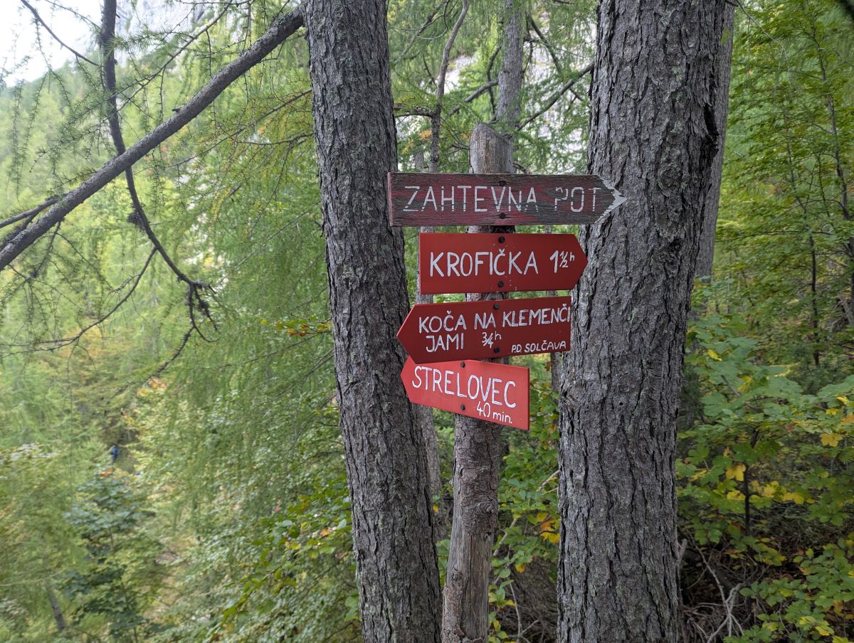 Pot z vrha proti planinski koči je zelo slabo označena in na nekaterih delih tudi nevarna, zaradi tega smo za varen prehod po izpostavljenih delih potrebovali nekaj več časa. Pred planinsko kočo smo se ustavili še pri največjem mecesnu v Sloveniji, ki v višino meri 29 m, njegov obseg pa naj bi bil 465 cm.