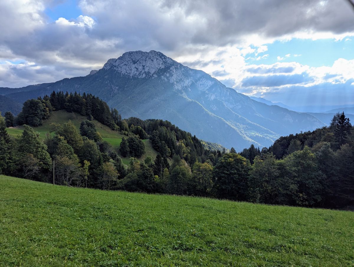 Razgledi na Kamniško Savinjske Alpe so občasno zakrile meglice, veter na samem vrhu pa nas je hitro pregnal v nadaljevanje poti proti Logarski dolini.
