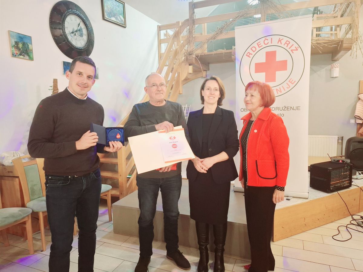 V organizaciji Območnega združenja Rdečega križa Novo mesto je v sredo, 12. novembra, v Gostilni Pugelj potekala slovesna podelitev priznanj krvodajalcem jubilantom.