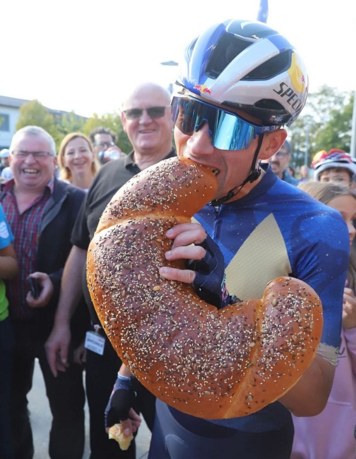 No, enega je Primož Roglič dobil celo za domov – takega glinenega, podaril mu ga je šentjernejski podžupan Jože Vrtačič. Priljubljenega športnika pa so še kako razveselile tudi šentjernejske kmetice, ki so se izkazale z inovativnostjo. Spekle so mu ogromen rogljič, ki mu ga je izročila predsednica društva Danijela Pavlič. Rogljič za Rogliča!