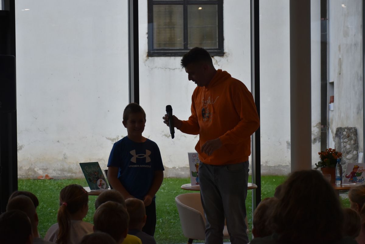 V četrtek, 25. 9. 2025, je ob zaključku projekta ''Kdor bere, je car!'' mlade carje v Valvasorjevi knjižnici obiskal raper Rok Terkaj – Trkaj.