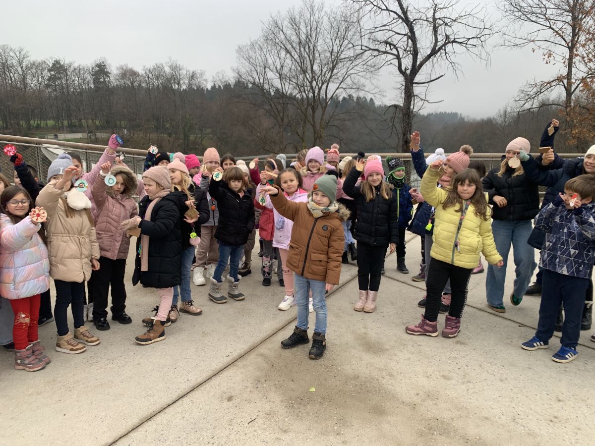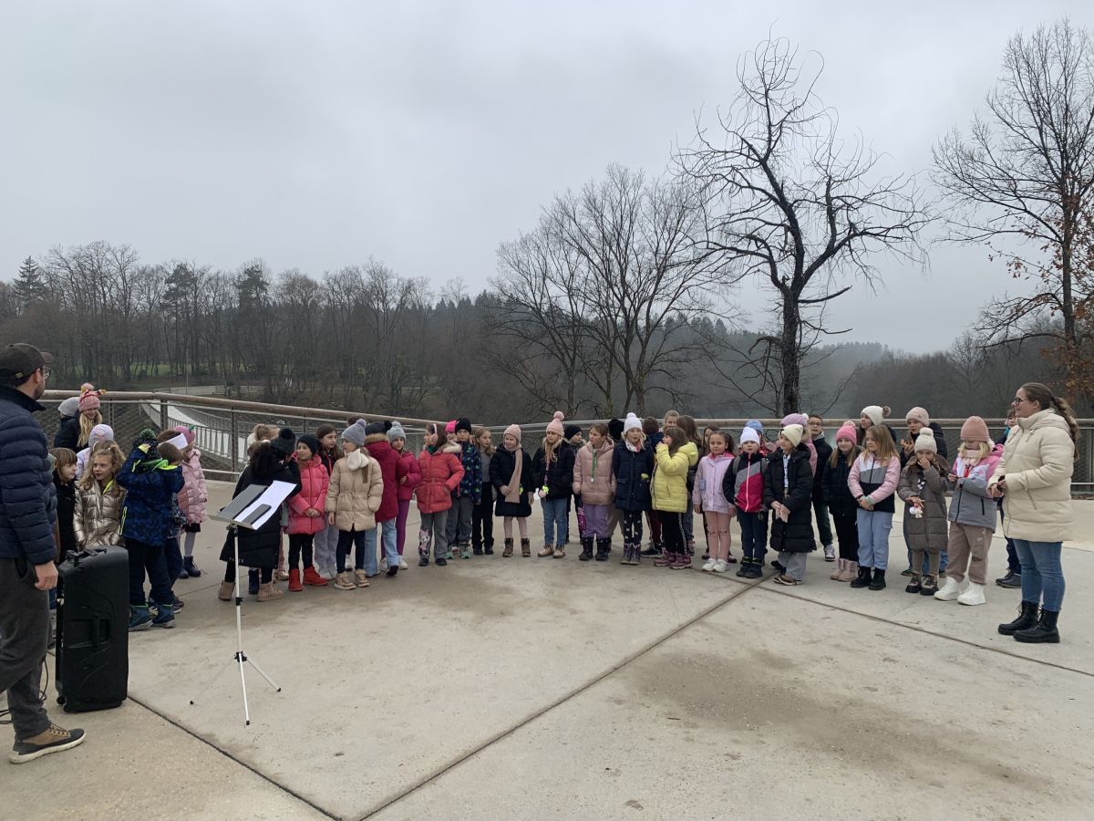 Tako smo se v četrtek, 4. 12. 2025, z otroškim pevskim zborom odpravili na pot proti brvi v Irči vasi, ki simbolično združuje sosednji skupnosti Drsko in Bršljin. Na drugi strani brvi so nas pričakali pevci iz otroškega pevskega zbora Osnovne šole Drska, s katerimi smo prvič skupaj zapeli ravno ob otvoritvi Štukljeve brvi.