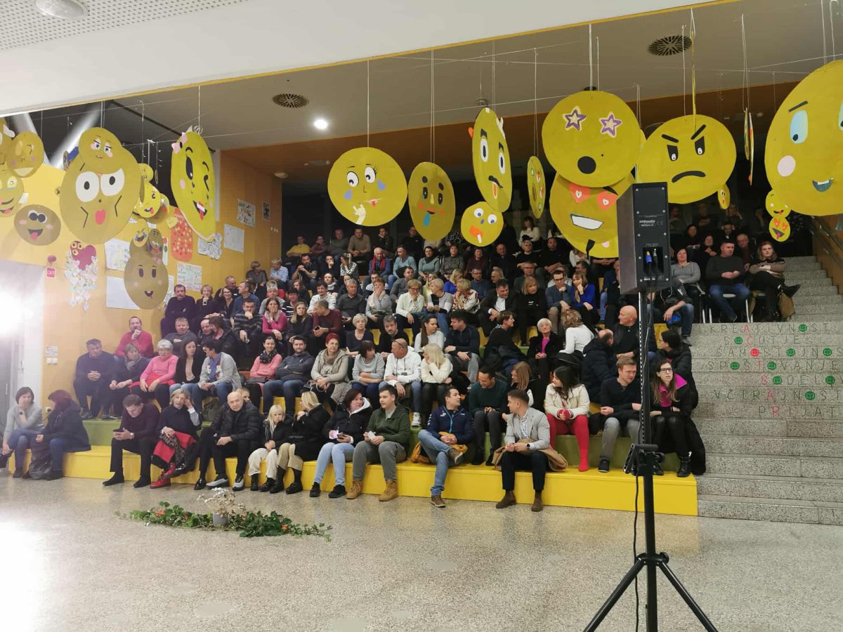Ko je tema že ovila mirnopeško dolino so avtomobilski žarometi osvetljevali pot do Osnovne šole Toneta Pavčka, kjer so mirnopeški Brenčači ponovno pripravili zabaven veče