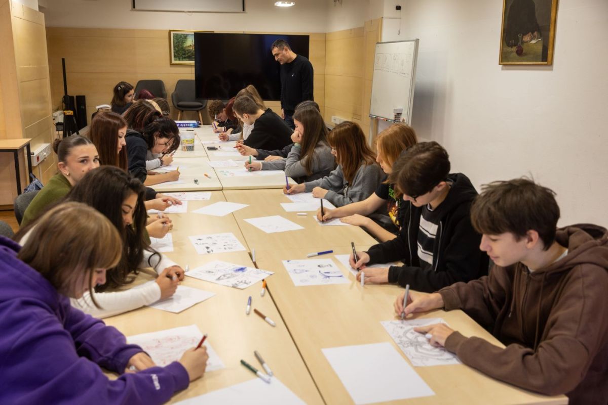 Sledilo je predavanje akademskega slikarja, risarja stripov in ilustratorja Cirila Horjaka – dr. Horowitza, ki je mladim predstavil, kako nastaja stripovski lik. Med drugim so si lahko ogledali tudi, kako bi nekateri znani stripovski junaki izgledali v likovnem stilu drugega junaka, na primer Jaka Racman v likovnem stilu Asterixa ali Batmana.