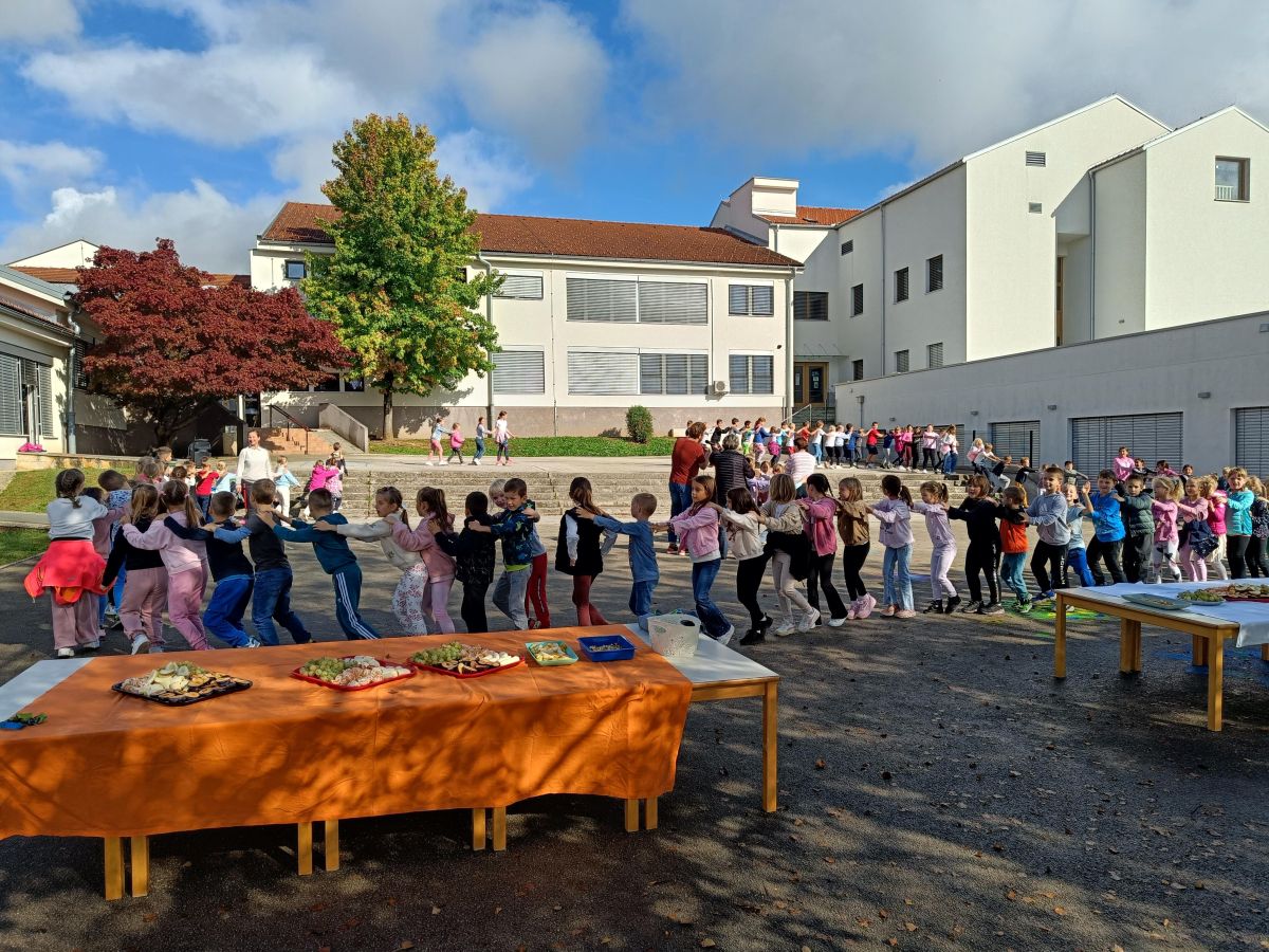 V petek smo uživali na gibalni zabavi na ploščadi ob šoli, kjer smo se družili, plesali ob bansih, učitelji pa smo pripravili bogato sadno malico z raznovrstnim sadjem, ki je otrokom seveda zelo teknilo.