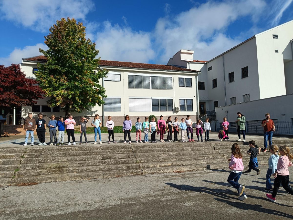 V sredo smo se še dodatno razgibali na poligonu v telovadnici, tretješolci pa so se odpravili na kulturni dan – Muzej na prostem v Pleterjih.
