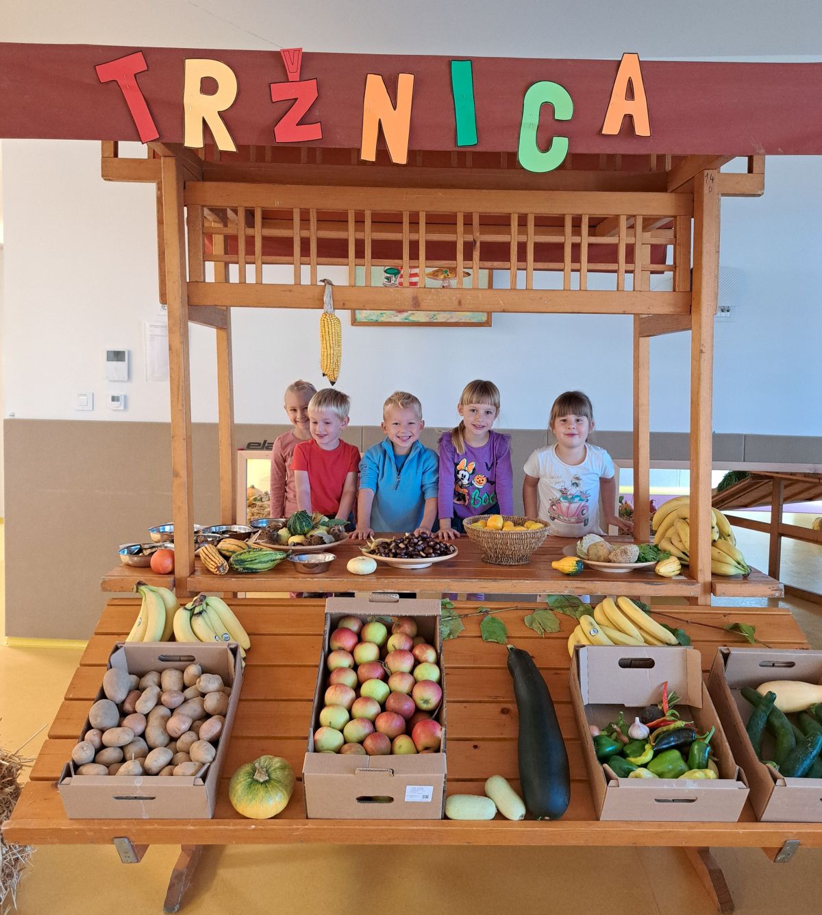 V sodelovanju s podjetjem Komunala Brežice, ki nam je prijazno posodilo stojnice, smo v skupnem prostoru vrtca postavili pravo otroško tržnico. Na njej ni manjkalo nasmejanih obrazov, barvitih pridelkov ter topline prijaznih besed.