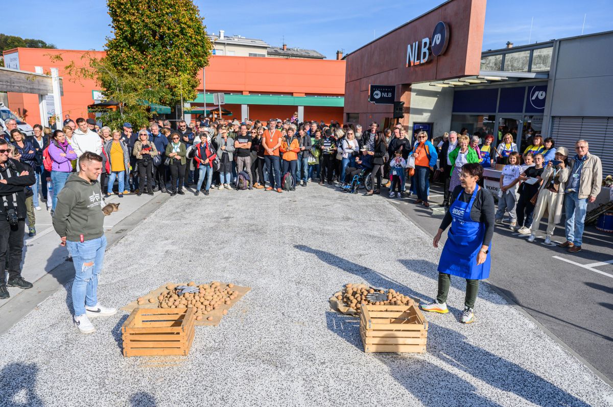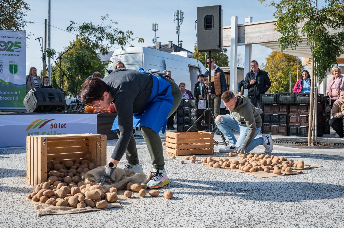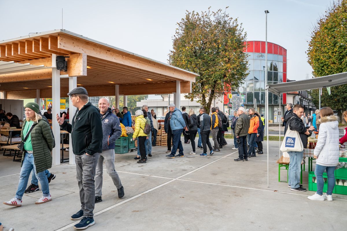 Ob prvi obletnici nove tržnice v središču Ivančne Gorice je v soboto, 11. oktobra 2025, dišalo po tenstanem krompirju, šmornu in drugih dobrotah.