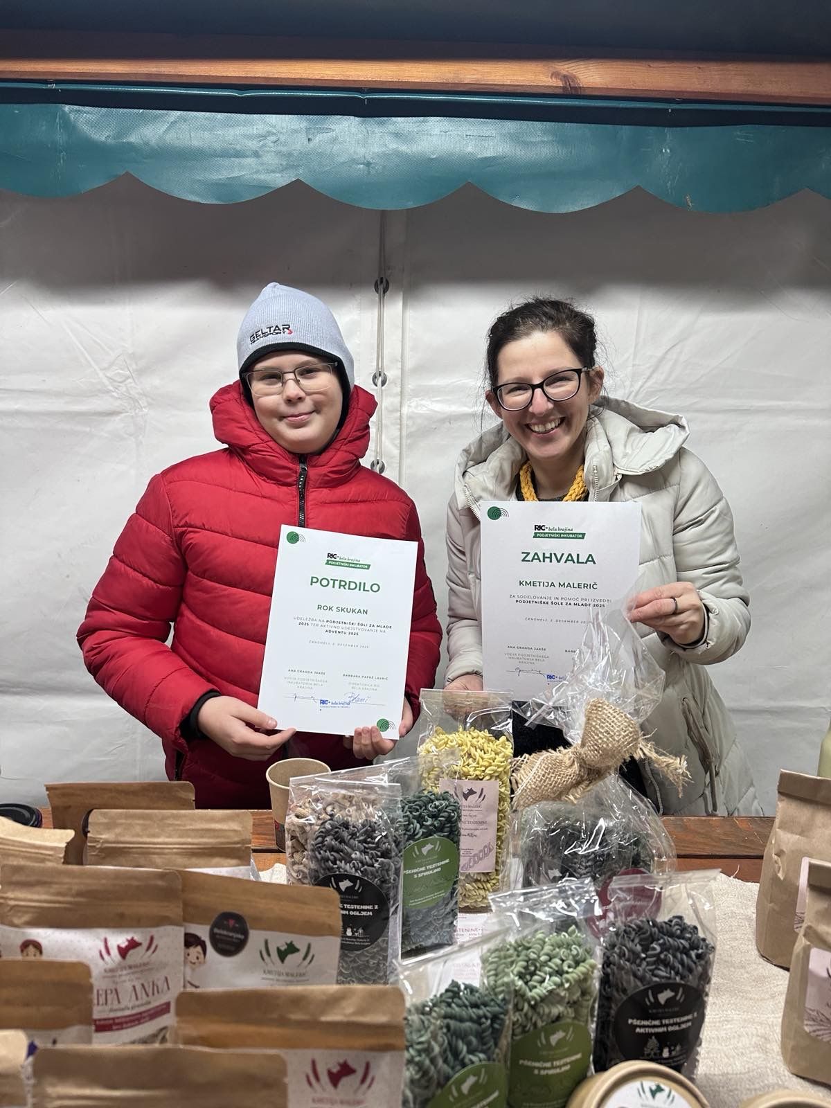 Med projekti, predstavljenimi na dogodku, so bili izdelki Roka Skukana, udeleženca letošnje Poletne podjetniške šole, ki je potekala v sodelovanju s Kmetijo Malerič. V okviru programa je razvil tri različice testenin, ki jih je na dogodku prvič predstavil obiskovalcem. Sodelovanje na stojnici mu je omogočilo prvi neposredni stik s potrošniki ter boljše razumevanje njihovih potreb in odzivov. Ob njem sta se predstavili tudi dve srednješolski ekipi, ki razvijata podjetniški ideji za nacionalno tekmovanje mladih POPRI. Obiskovalci so si lahko ogledali njune prototipe, jih preizkusili in dijakom podali dragocene povratne informacije. Nastop na dogodku je ekipama ponudil pomemben vpogled v uporabniško izkušnjo ter dodatno motivacijo za nadaljnji razvoj rešitev.