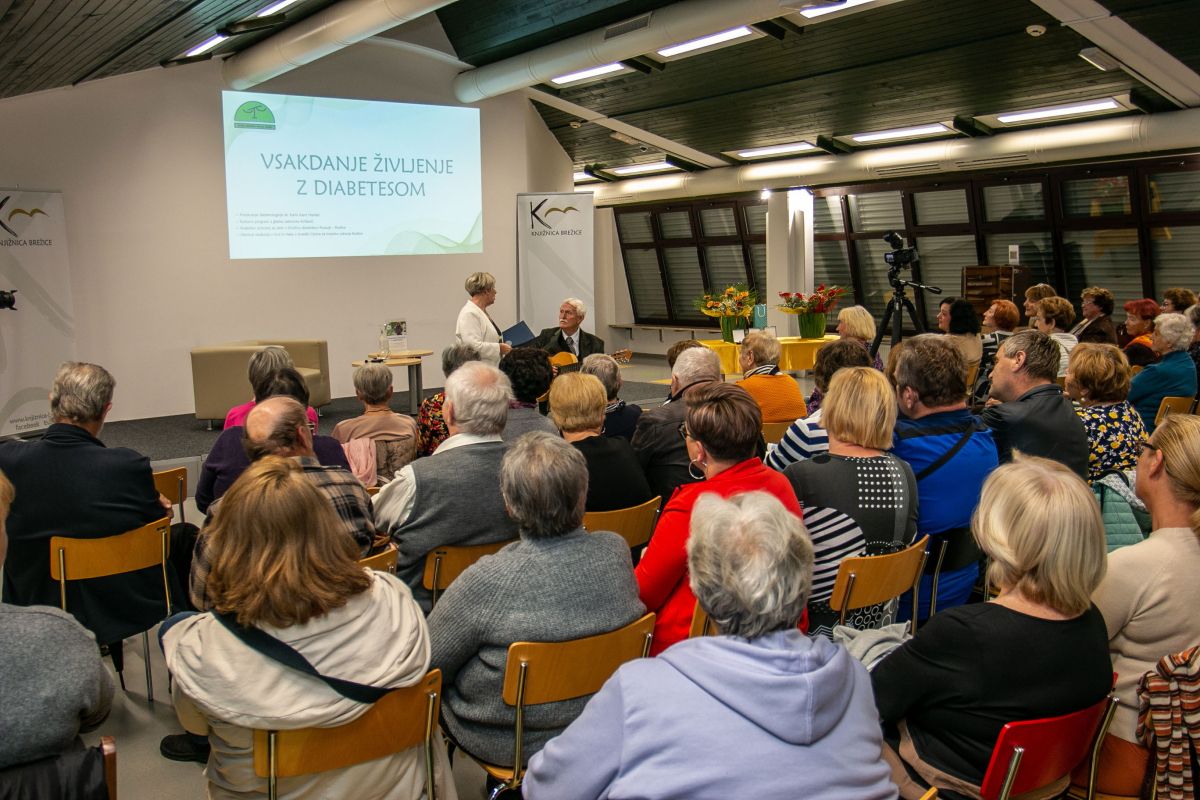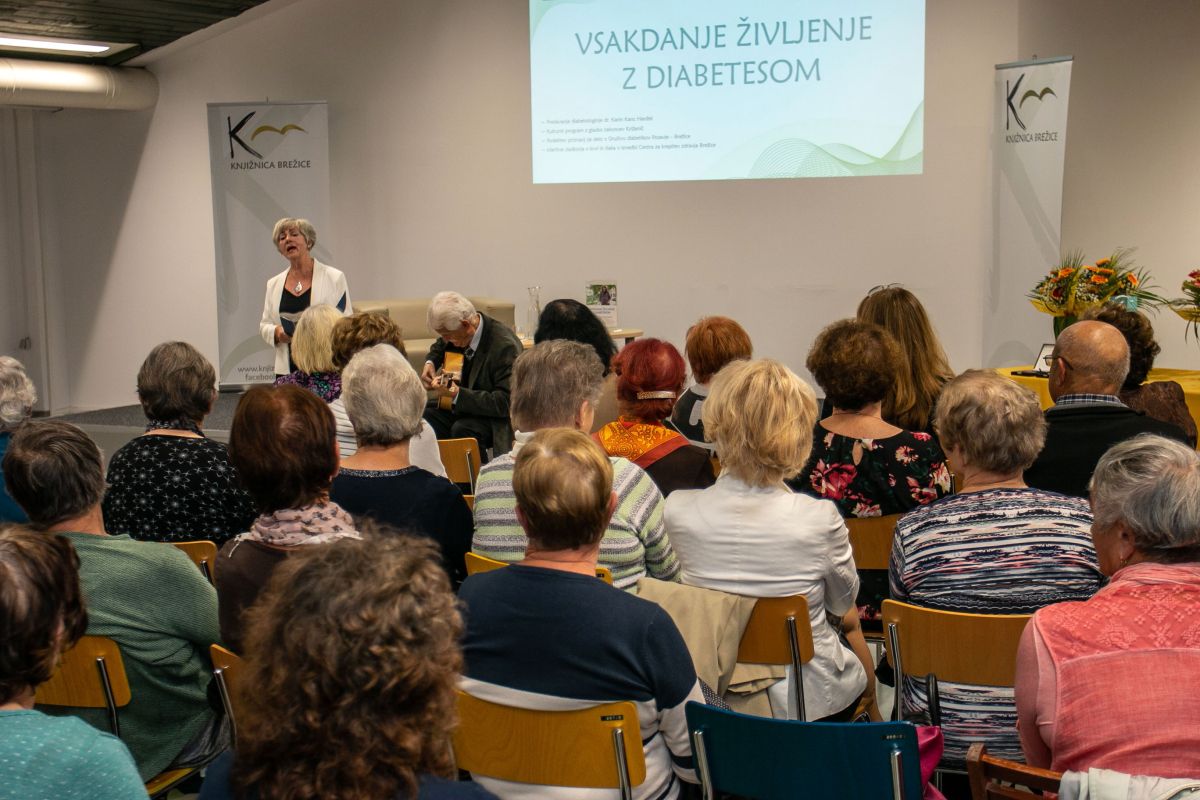 Zbrane v Dvorani Savice Zorko v Knjižnici Brežice je uvodoma nagovorila Darja Mandžuka, predsednica društva. V nadaljevanju smo prisluhnili dr. Karin Kanc Hanžel, dr. med., specialistki interne medicine in prejemnici naziva moja diabetologinja 2024. Poleg diabetologije se ukvarja tudi s psihoterapijo oseb s sladkorno boleznijo ter je avtorica več kuharskih knjig.