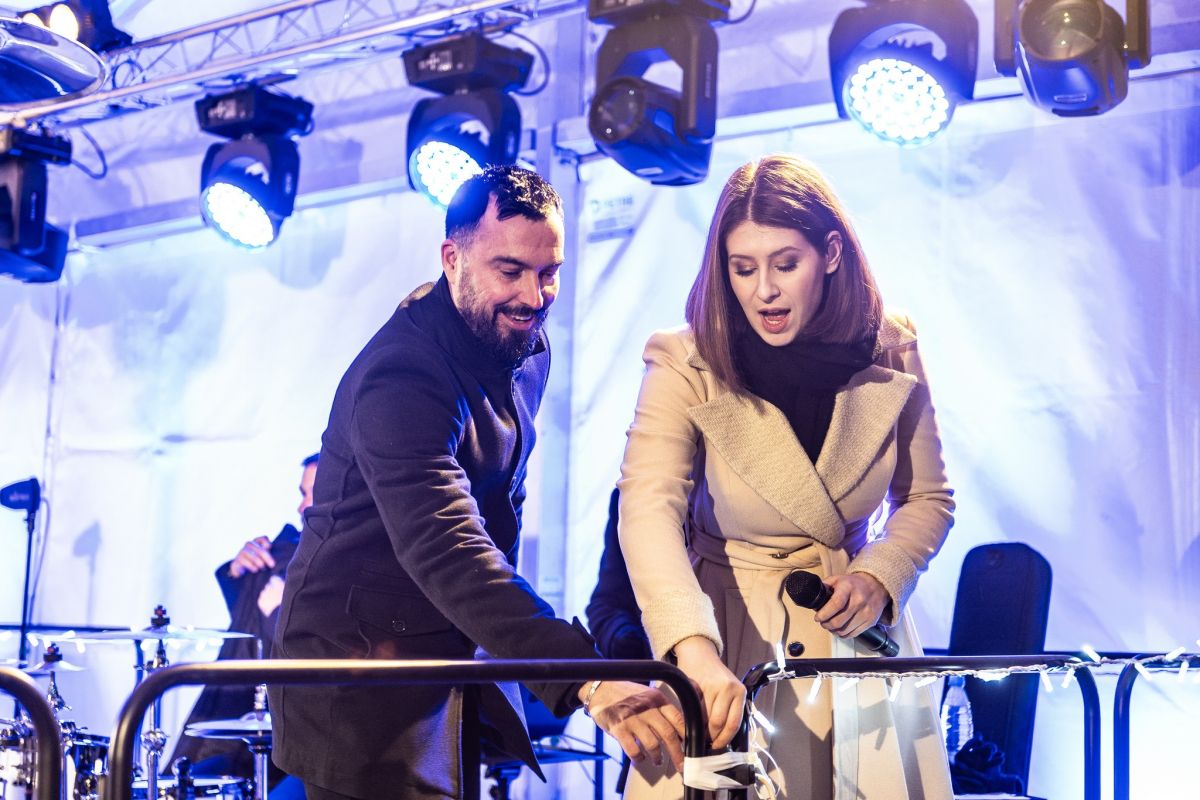 Eva Boto pa je tudi pomagala županu Občine Šentrupert Tomažu Ramovšu prižgati praznične lučke.