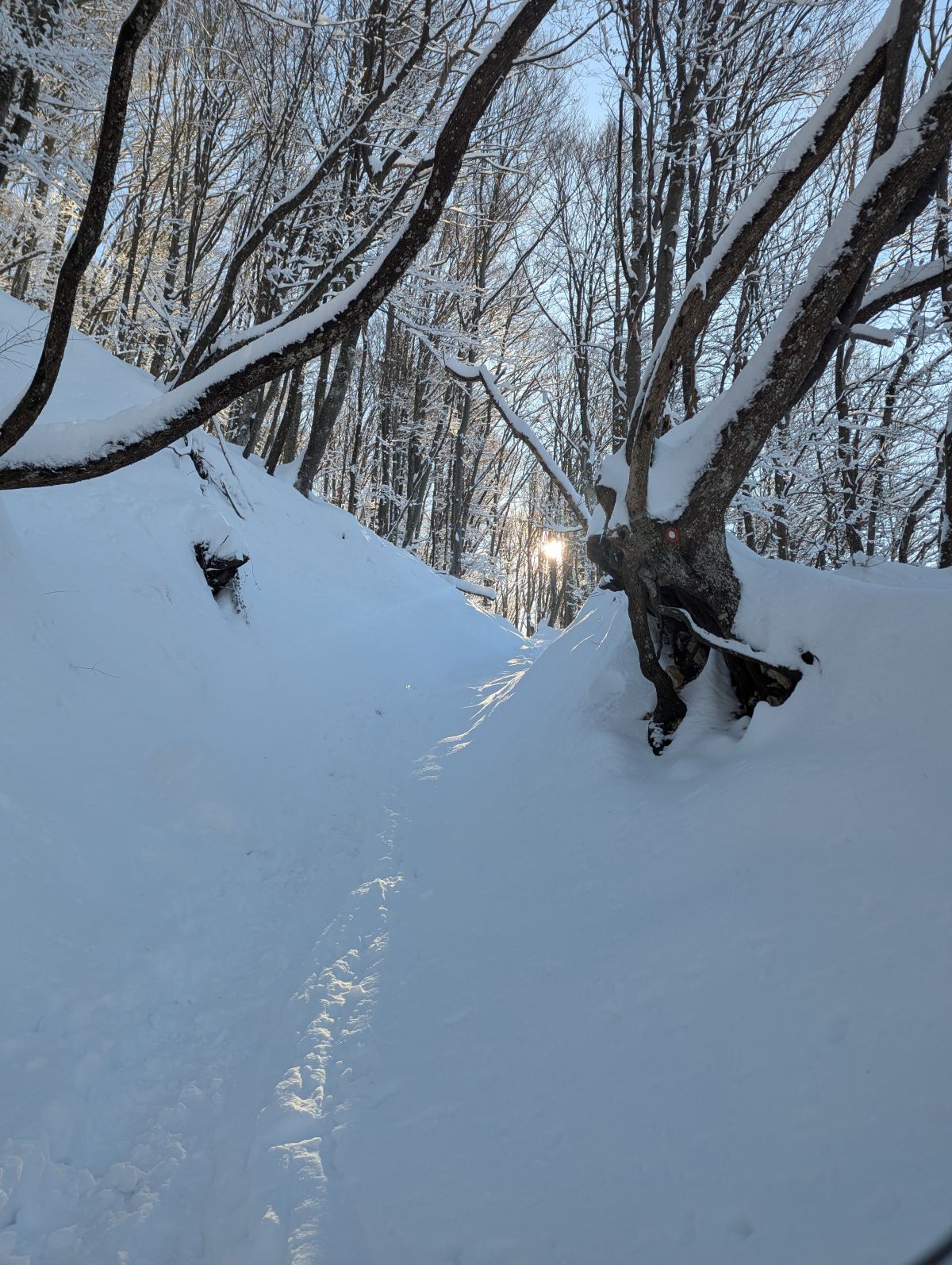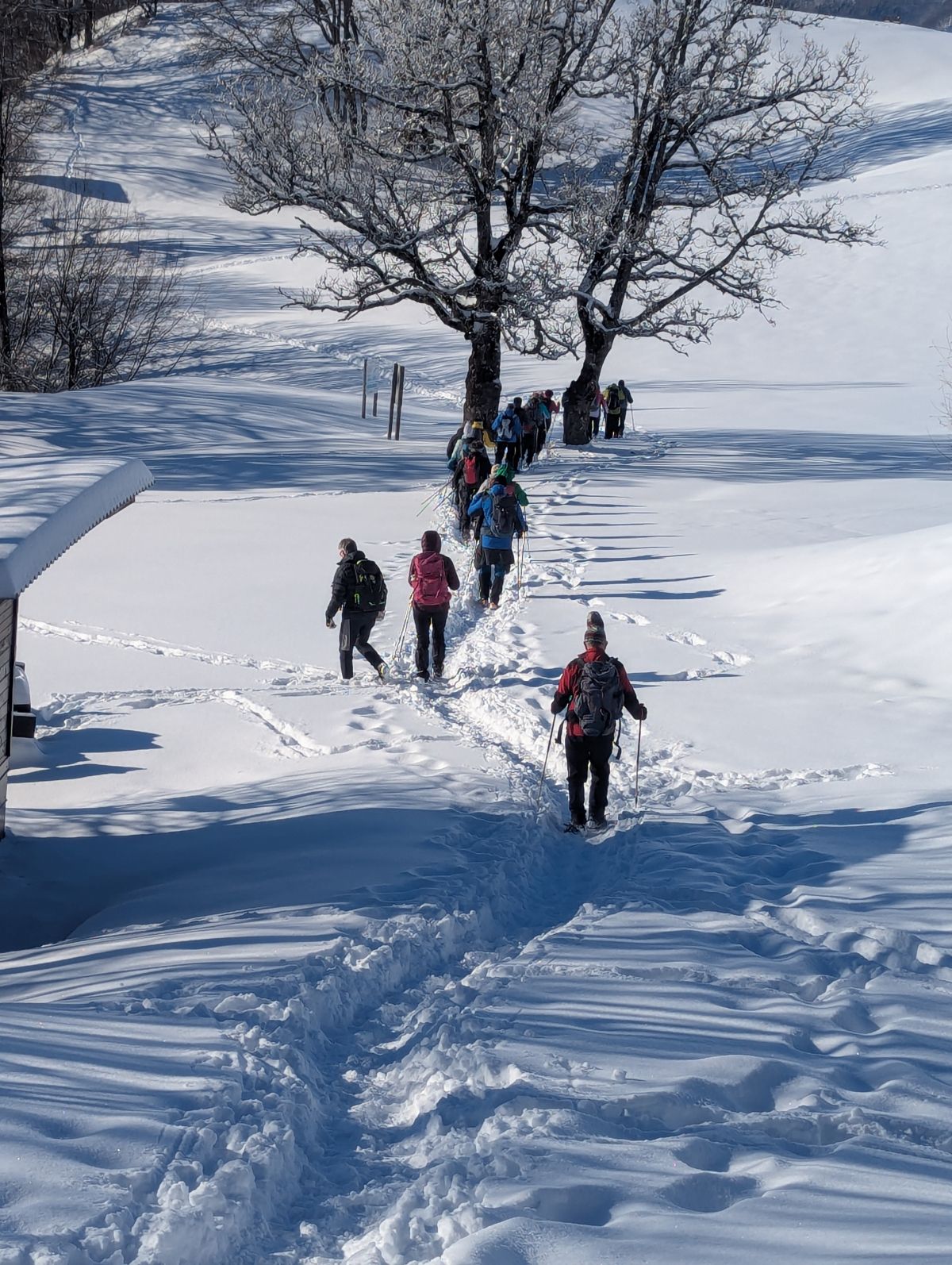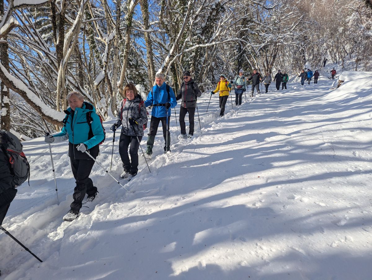 Na Železniški postaji Breg smo zapustili vlak, na hitro predstavili našo pot vzpona, pregledali opremo udeležencev in se po asfaltni cesti podali na pot. Po 15 minutah hoje po zasneženi asfaltni cesti smo zavili na gozdno pot, ki se je strmo dvigovala na travnik. Sončni žarki so obsijali strmino, meglice, ki so se dvigovale iz reke Save, so izginile in pokrajina je postala po iskrivem snegu čudovita. Ob ponovnem prihodu v gozd so nekateri že slekli tople bunde. Postanki pa so bili kljub temu kratki, saj so bile temperature zraka že vedno zelo nizke.