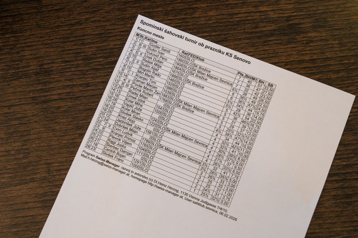 V Gostilni Senica je potekal spominski hitropotezni šahovski turnir ob prazniku KS Senovo.