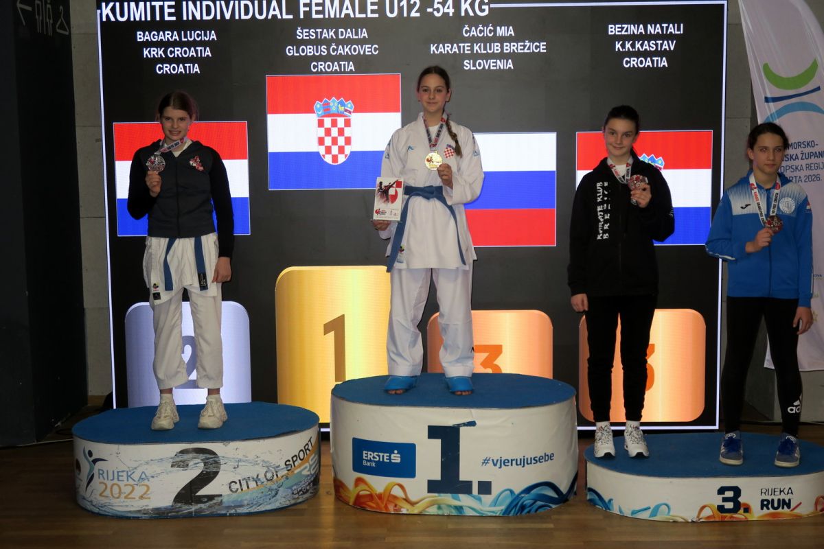 Eva Strgar, Vanessa Volčanjšek Tomažin in Mia Čačić so nastopile v številčni kategoriji kate deklice U12. Vanessa se je prebila najdlje, v tretjem kolu pa je morala priznati premoč izkušenejši tekmici iz Bosne in Hercegovine. Evi in Mii pa je kljub odločni in natančni izvedbi kate tokrat zmanjkalo nekaj športne sreče, zaradi česar nista posegli po vidnejši uvrstitvi.