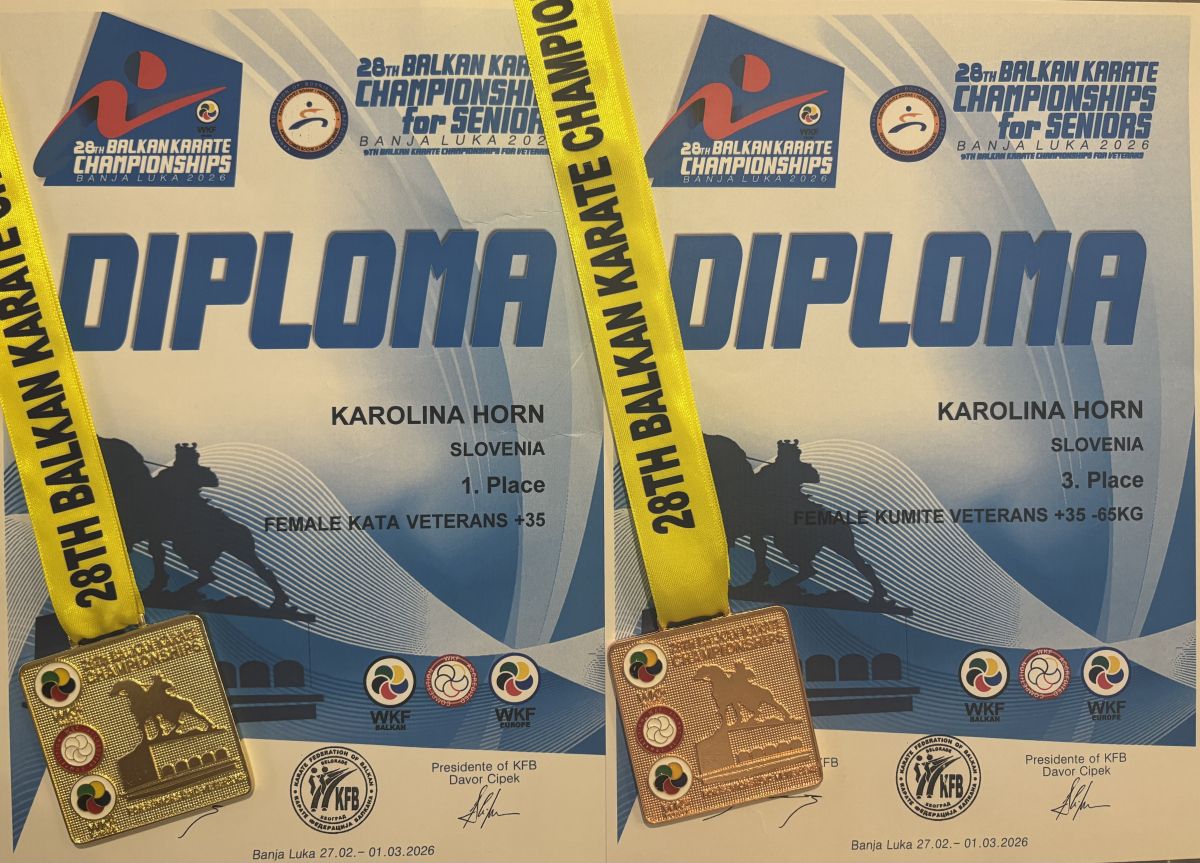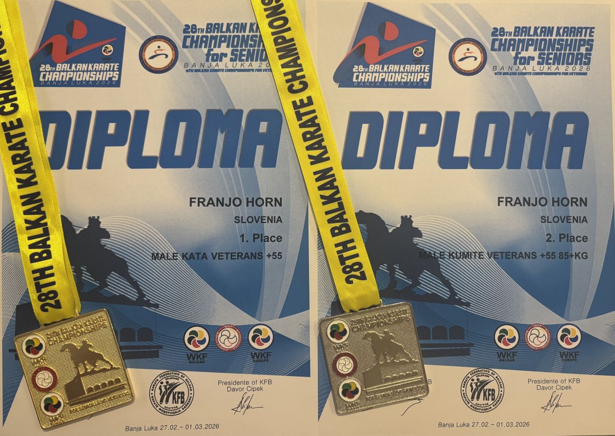V soboto sta zakonca Horn še enkrat uspešno zastopala Slovenijo in zopet osvojila dve medalji. Tokrat je naslov balkanskega prvaka v katah posamezno v izjemno močni in številčni konkurenci osvojil Franjo Horn, ki je s kato Gojushiho dai premagal Turka, s kato Nijushiho Hrvata ter s kato Gojushiho sho še drugega Hrvata. Isti dan je na tatami v borbe vstopila še Karolina, ki je po več letih premora s tekmovanjem v borbah odlično nastopala ter po enem tesnem porazu in drugi zmagi na koncu osvojila bronasto medaljo.
