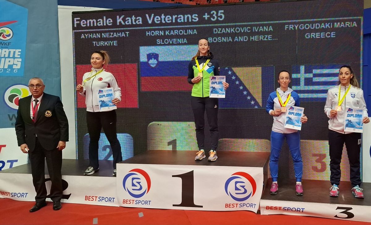 V petek je Karolina Horn v izjemno močni konkurenci v katah posamezno v treh krogih suvereno premagala s kato Gojushiho dai proti Turkinji 5:0, kato Unsu proti Grkinji 5:0 in kato Kanku sho proti Turkinji 4:1 ter zasluženo osvojila naslov balkanske prvakinje. Posebno pohvalo je Karolini na družbenih omrežjih namenila tudi Karate zveza Slovenije. Še isti dan je v kategoriji borbe posamezno nastopal Franjo Horn, ki je v tej kategoriji osvojil srebrno medaljo in s tem naslov balkanskega podprvaka.