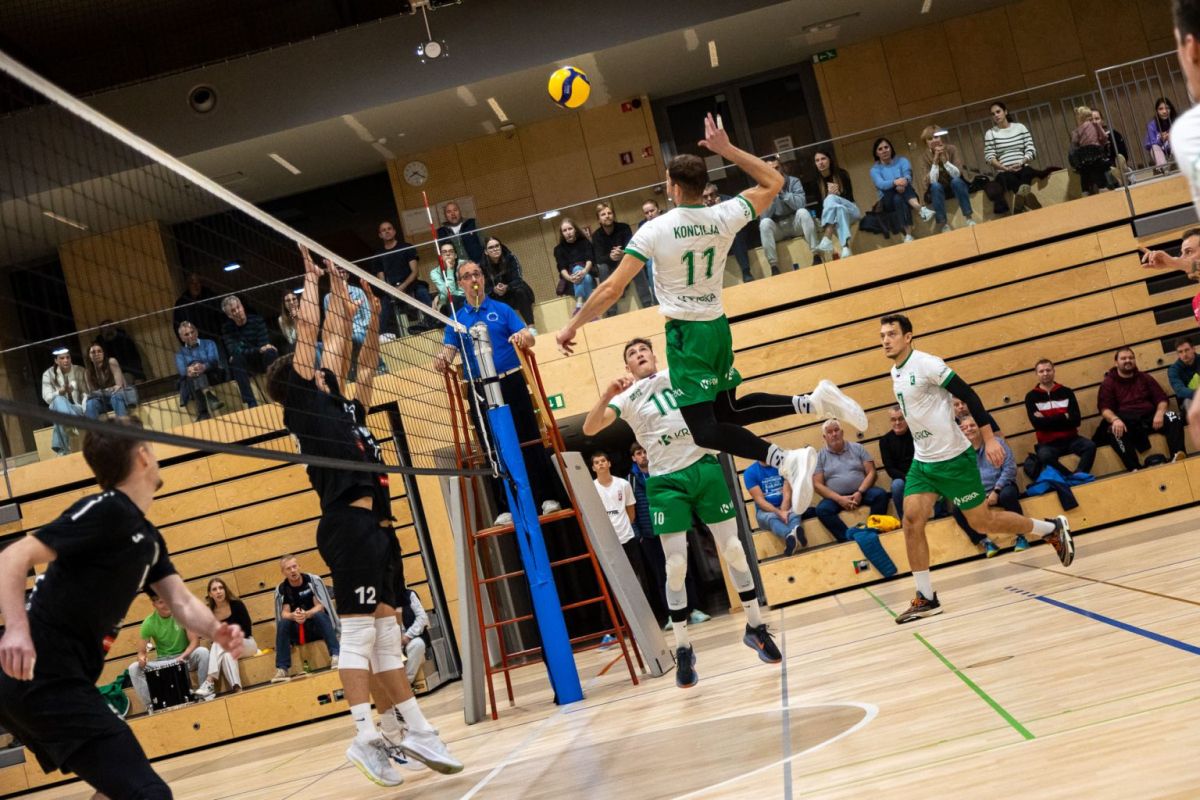 Po nekoliko slabšem uvodu v srečanje, ko so Novomeščani domači Panviti Pomgrad pustili, da dobi prvi niz, v katerem je vodila praktično od samega začetka, s 25:18, se je v nadaljevanju prebudila tudi Krka.