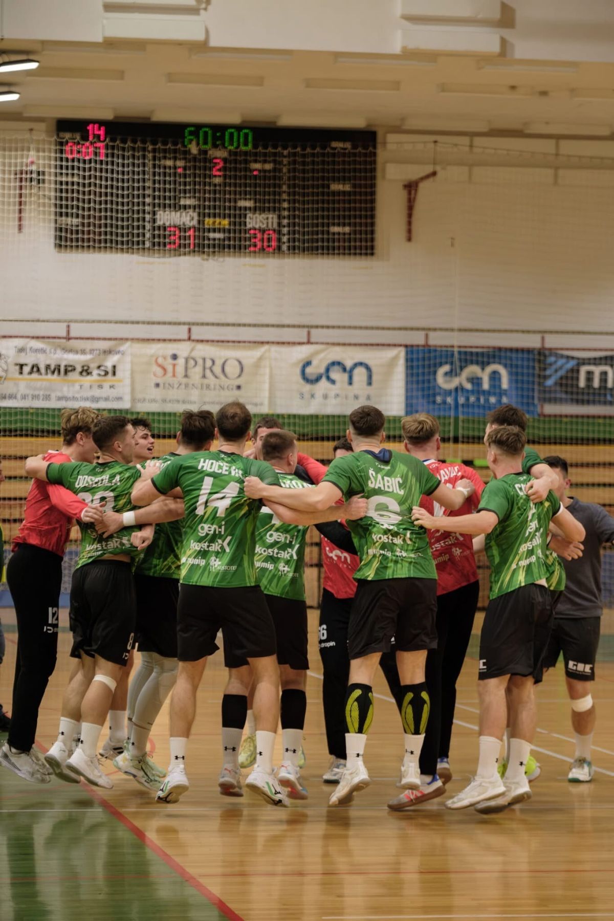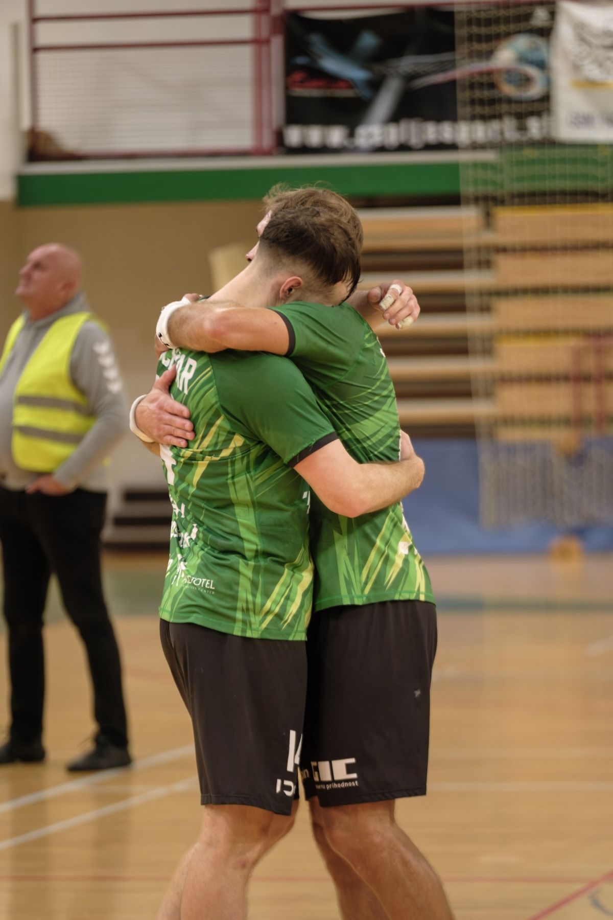 V drugem delu niso popuščali, temveč so stopnjevali igro in prišli do visoke zmage s 33:24. S sedmimi zadetki se je najbolj izkazal Filip Grubor, šest pa jih je dodal Erik Medič.