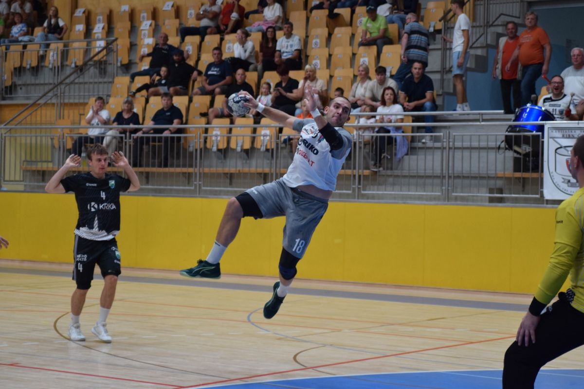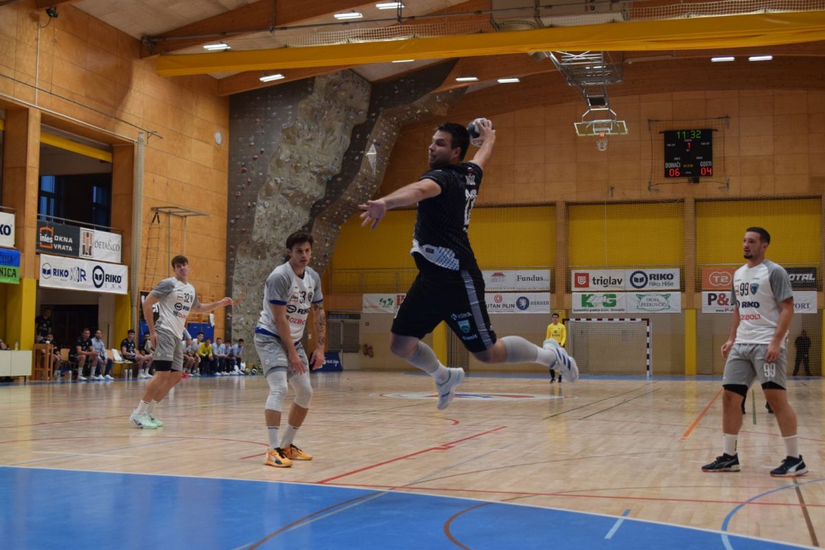 Prelomni trenutki dvoboja so vendarle minili v znamenju dolenjskih rokometašev. V 45. minuti so po golu Timoteja Grmška izenačili na 23:23, pet minut kasneje pa si priigrali tri gole prednosti (27:24).