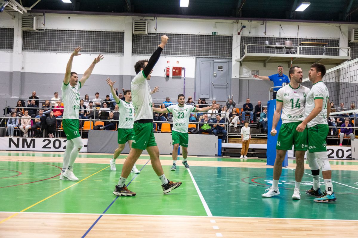 Po dobrem začetku so si domači hitro priigrali nekoliko višjo prednost (8:3), ki pa je skozi prvi set izginila. Kljub temu so ohranili mirno glavo in prvi set dobili z rezultatom 25:23. Tudi drugi set se je začel podobno kot prvi – nekaj več želje in kontrole nad igro je pokazala ekipa Krke, ki pa uvodne prednosti ni uspela zadržati. Dobro igro in zbranost v obrambi so prikazali Štajerci, ki so drugi set dobili s 25:20.