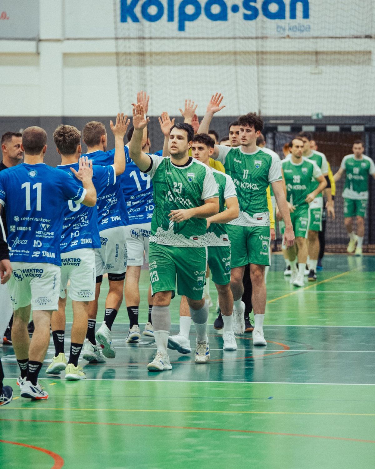 Ob povratku v domačo dvorano so člani MRK Krka prikazali odlično igro in skozi celotno srečanje držali prednost. Še posebej je blestel levi zunanji igralec Izidor Budja, ki je dosegel 10 zadetkov, medtem ko se je s sedmimi obrambami izkazal tudi vratar domačih Jure Blaževič. Po tekmi je Budja dodal: “Rezultat je takšen, kakršnega smo si želeli. Vedeli smo, da bo tekma težka, saj imamo deficit igralcev, ampak smo kljub temu strnili vrste v obrambi, v napadu pa dali dvestoodstotkov od sebe. Mislim,